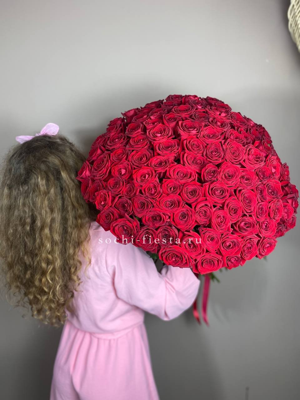 Сто одна голландская роза в букете — это история о масштабе и впечатлении. Объем композиции наполняет комнату и мгновенно притягивает внимание своим присутствием.