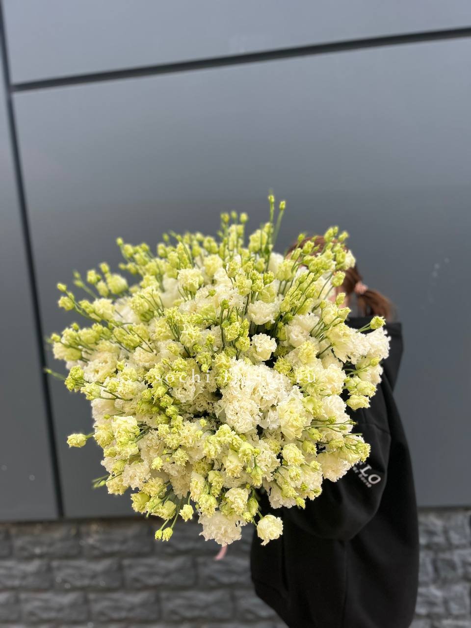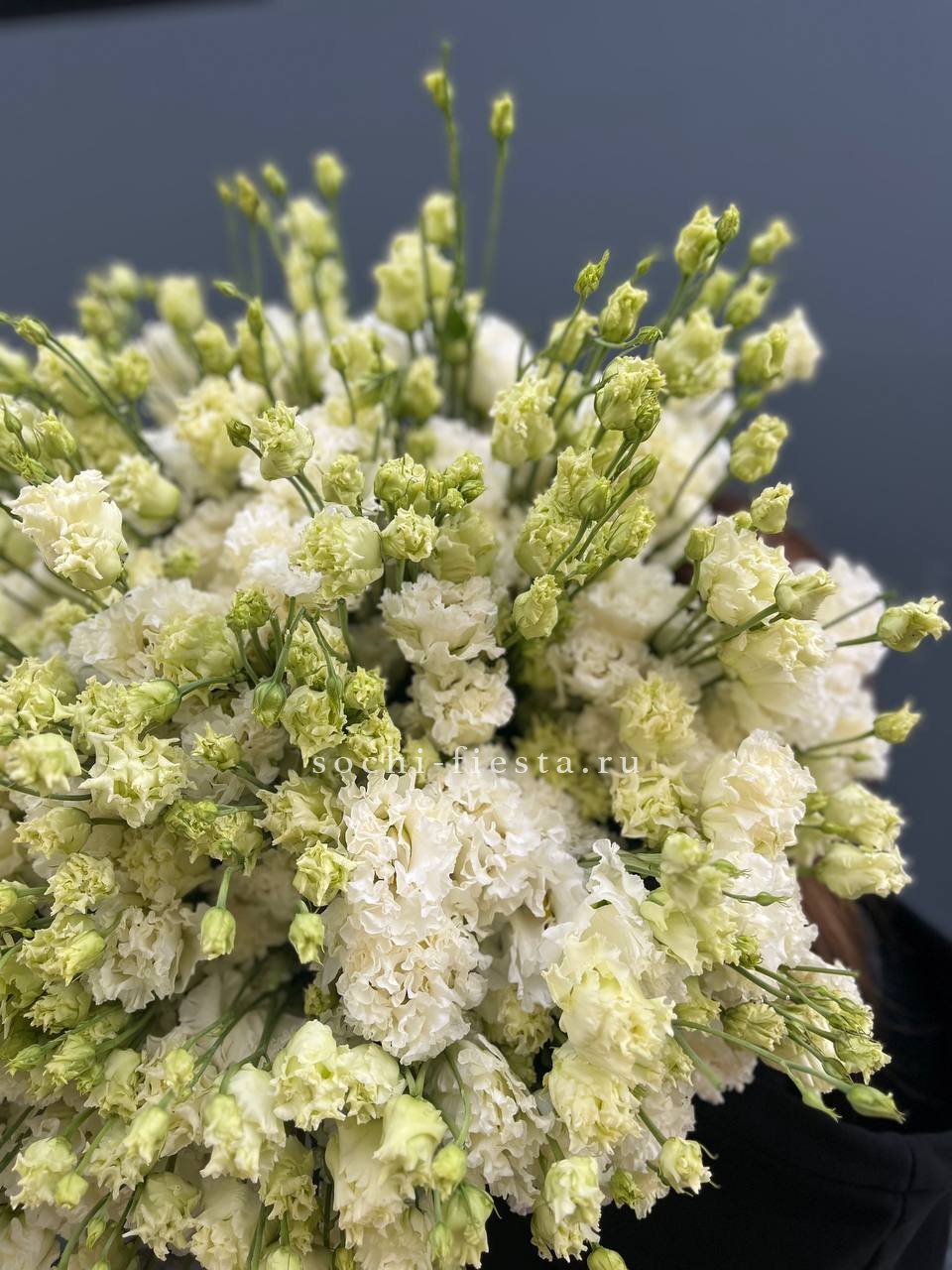 Двадцать пять веточек эустомы собраны в пышный букет и перевязаны лентой. Многослойные бутоны создают воздушный объём и мягкую игру оттенков. Классическая подача для тех, кто ценит естественную красоту цветка.
