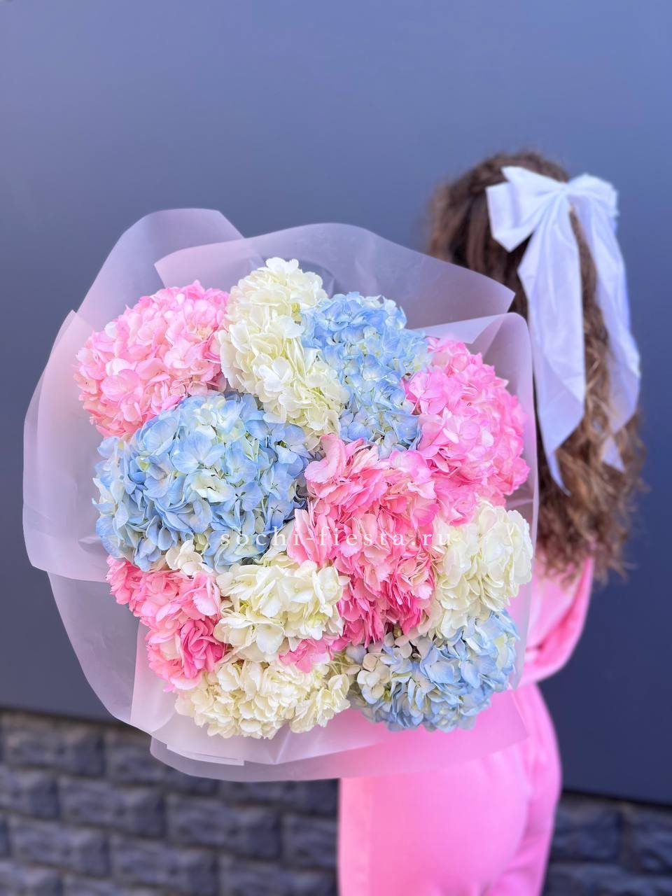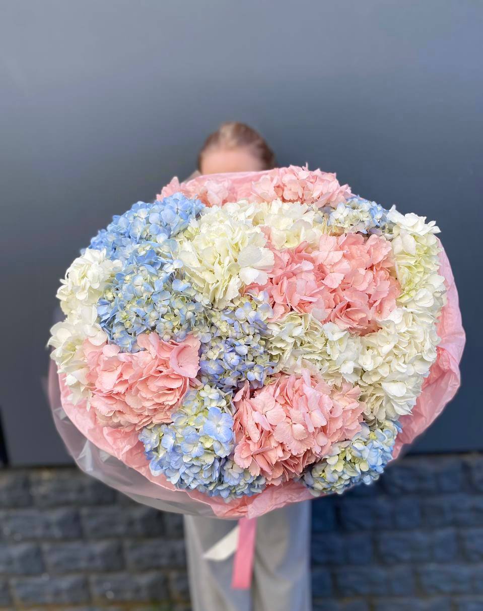 гортензия - 11 шт., лента, дизайнерская упаковка.