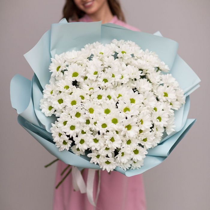 Одиннадцать веток кустовой хризантемы с множеством бутонов разной степени раскрытия. Воздушная композиция долго сохраняет свежесть и радует обилием мелких соцветий в лаконичной упаковке.
