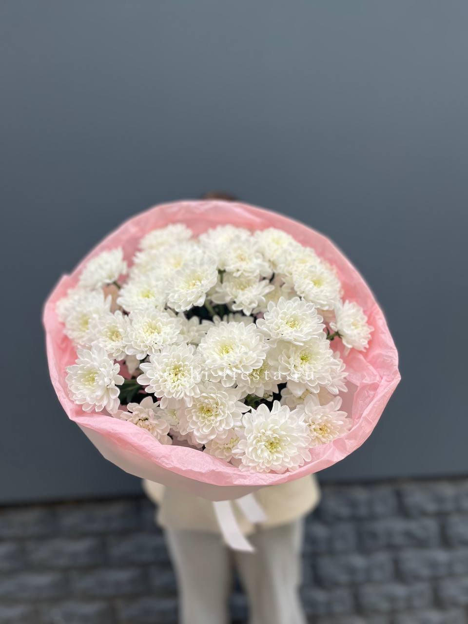хризантема кустовая - 11 шт., лента, дизайнерская пленка.