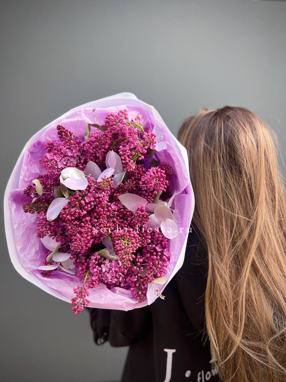 Девять веток сирени образуют воздушную форму с мягким силуэтом. Соцветия располагаются свободно, создавая ритм без строгой геометрии. Композиция легко вписывается в любое пространство, сохраняя естественную красоту весеннего цветения.