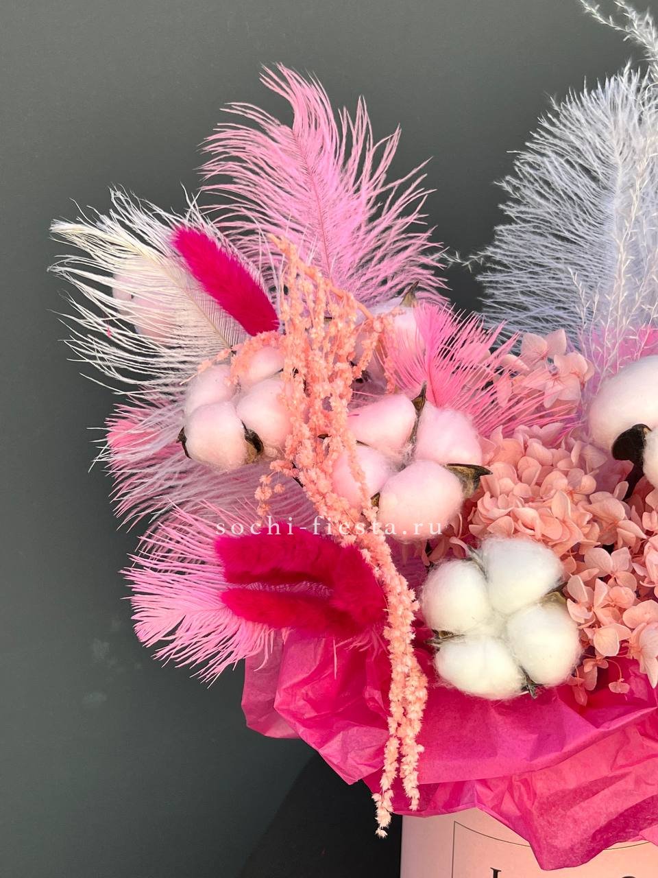 хлопок, лагурус, амарант, перья, аспарагус, цилиндр D13.
