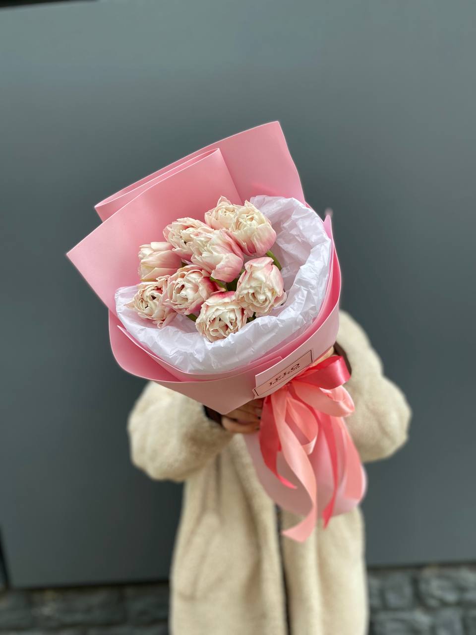нежные тюльпаны в розовом оформлении.