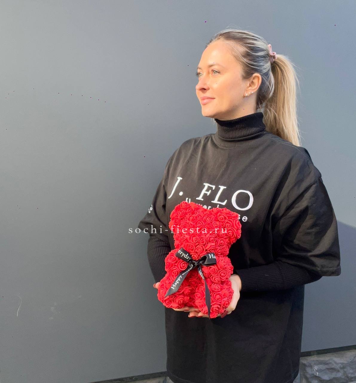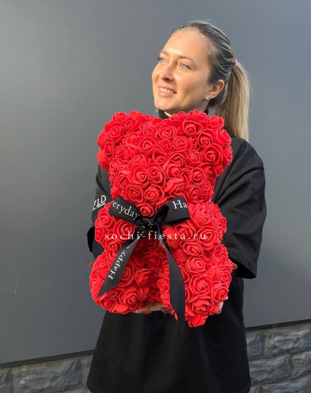 Медведь из роз красный