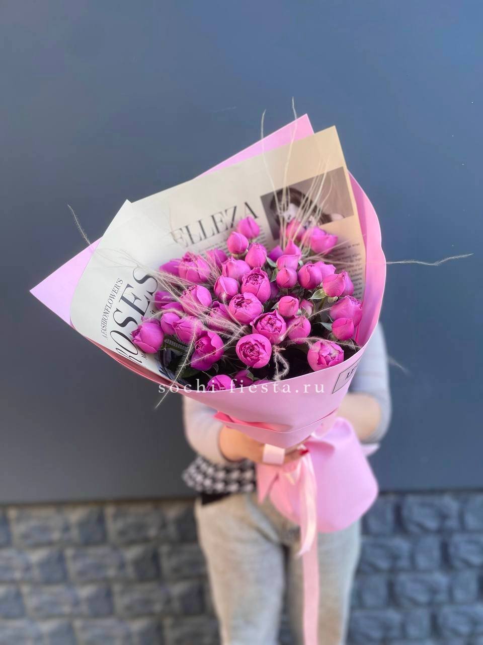 Мы работаем только со свежими цветами — букеты радуют от 7 до 14 дней и дольше при правильном уходе.
