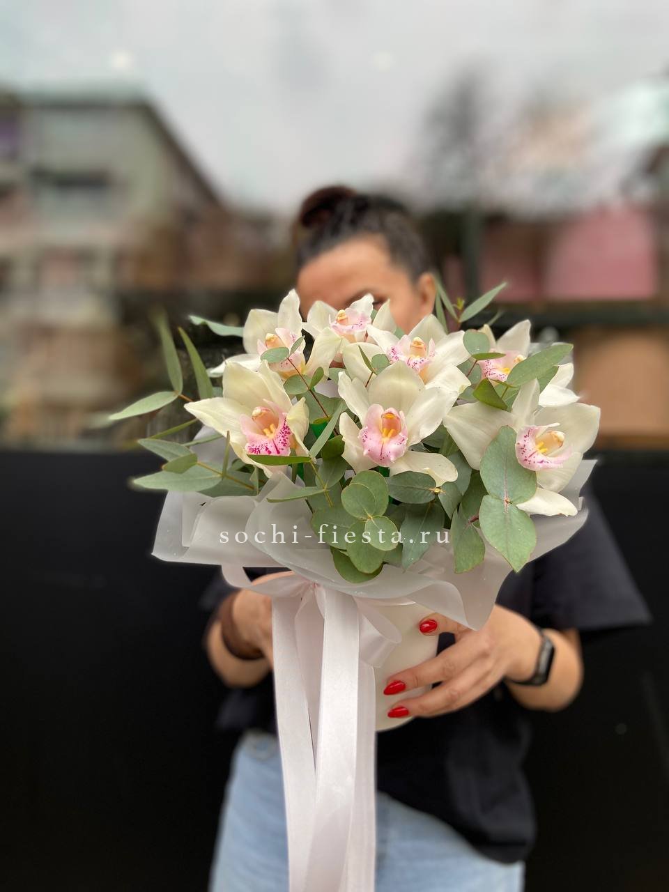 орхидея цимбидиум, эвкалипт, цилиндр, оазис.