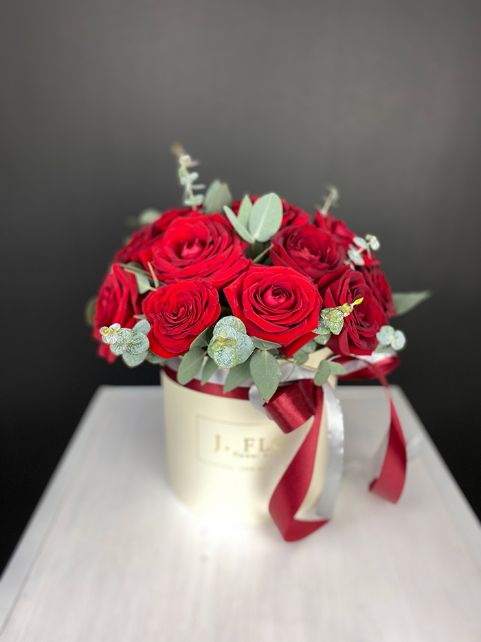 Глубокий алый оттенок роз создает яркое цветовое пятно в компактной сумочке. Насыщенность тона притягивает взгляд и остается в памяти.