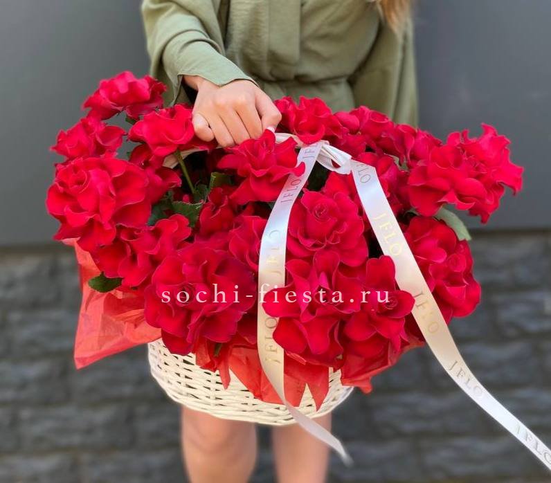 Для заказа товара "Красные французские розы в корзине" с доставкой в Пензе нажмите в корзину