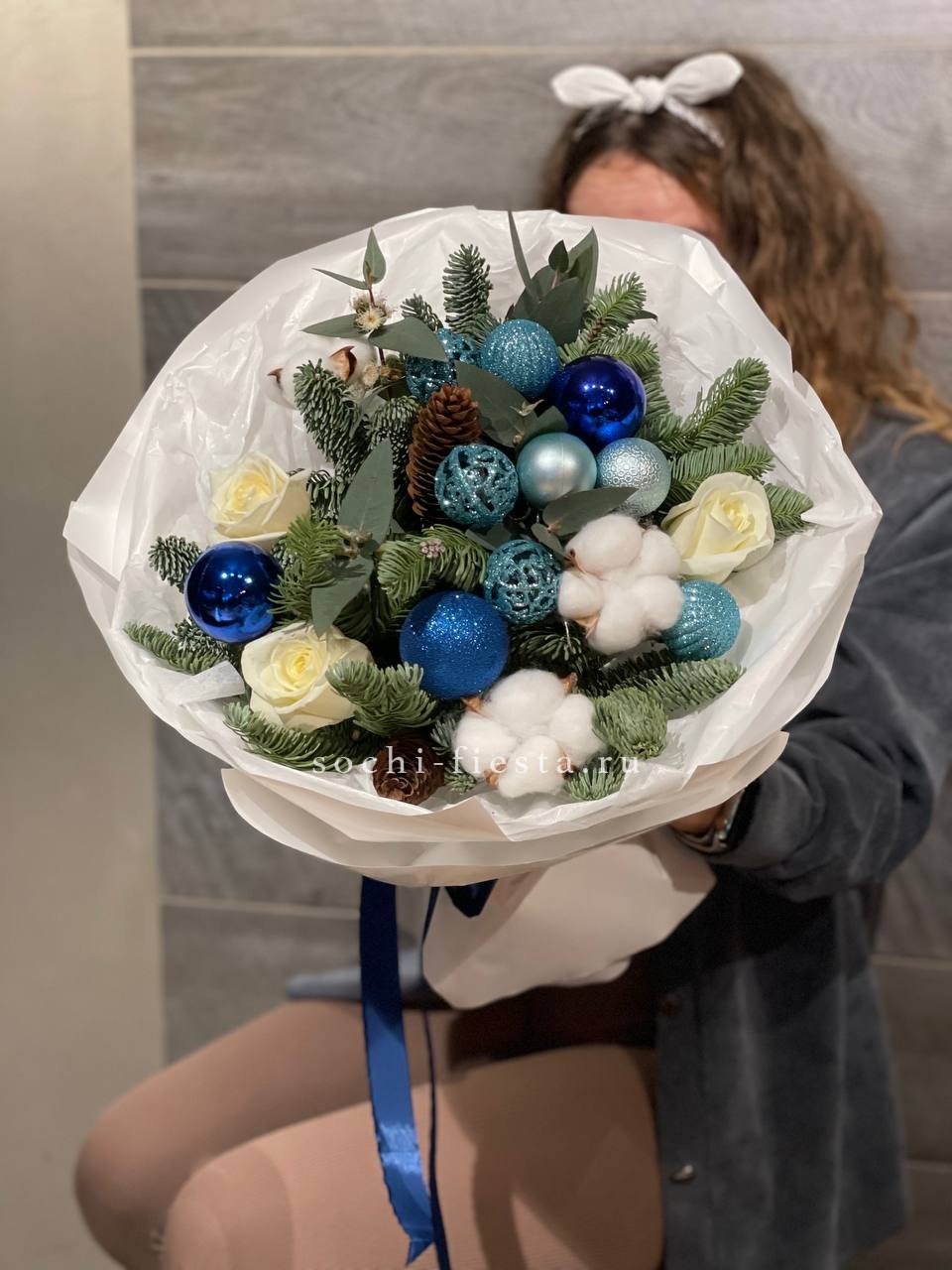 Новогодний букет "Синий иней"