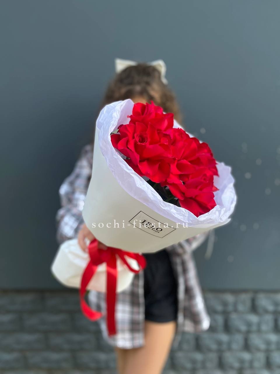 Пять французских роз в лаконичном оформлении — это чистота линий и выразительность каждого бутона. Компактная форма сохраняет свежесть и аккуратность надолго.