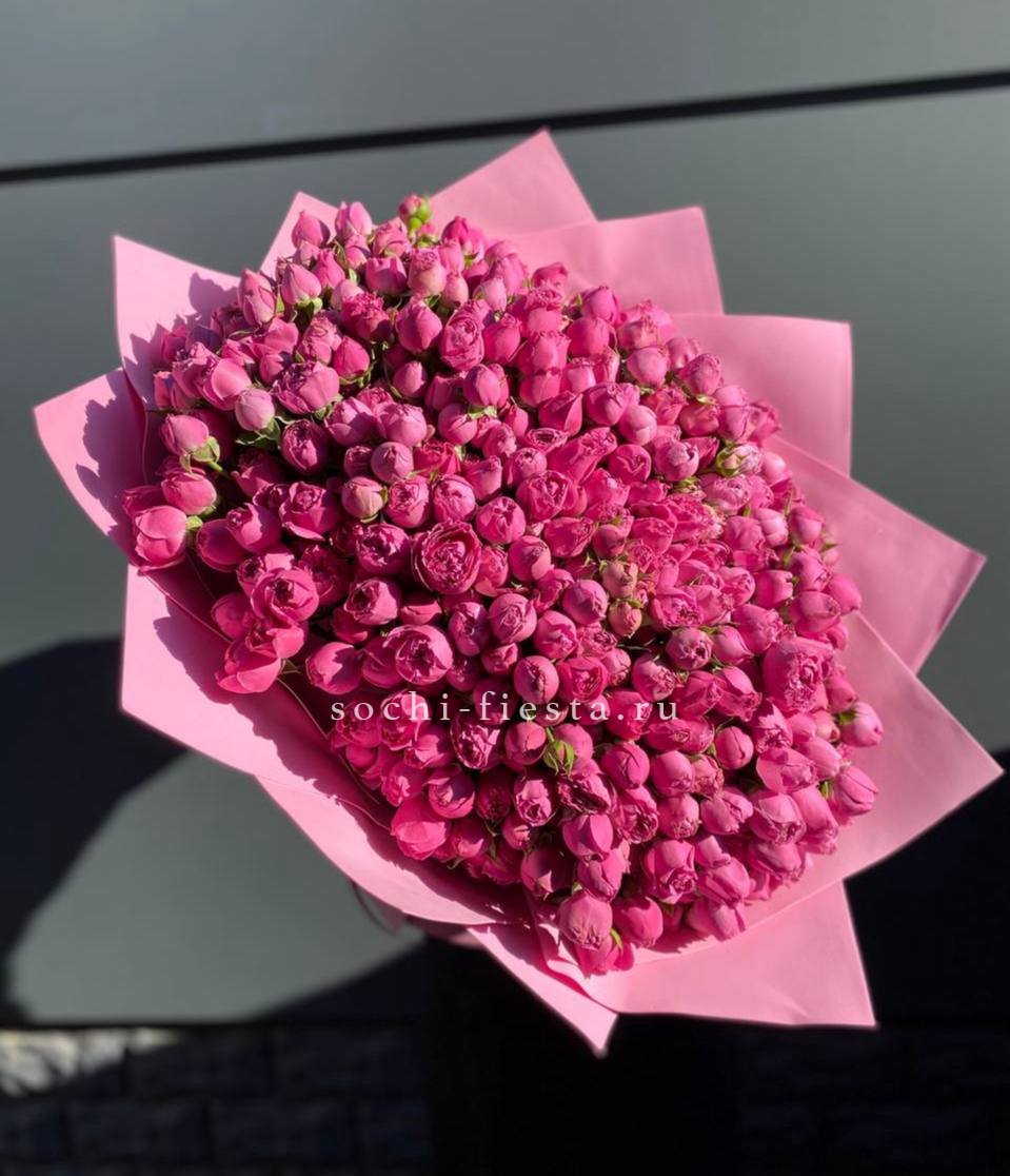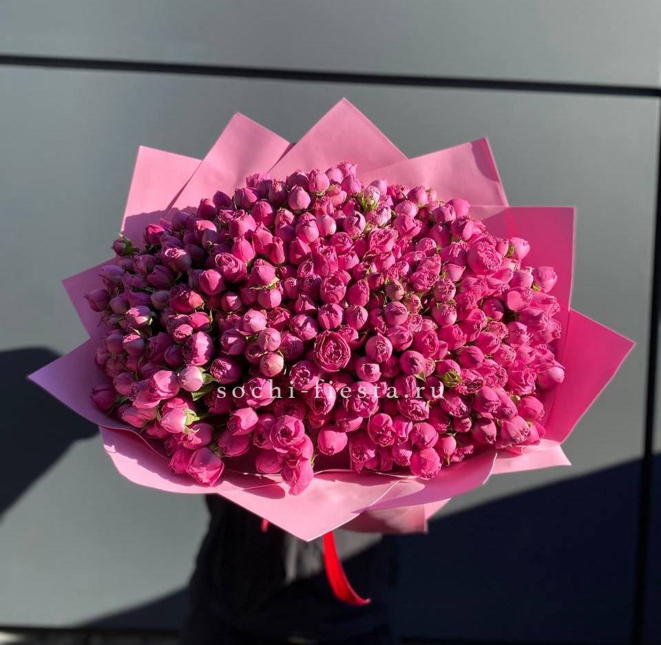 яркий букет из 5 пионовидных кустовых роз.