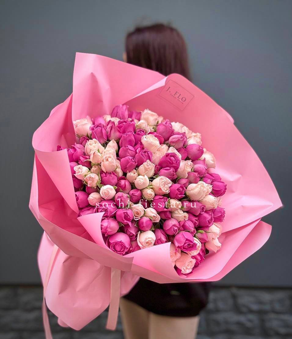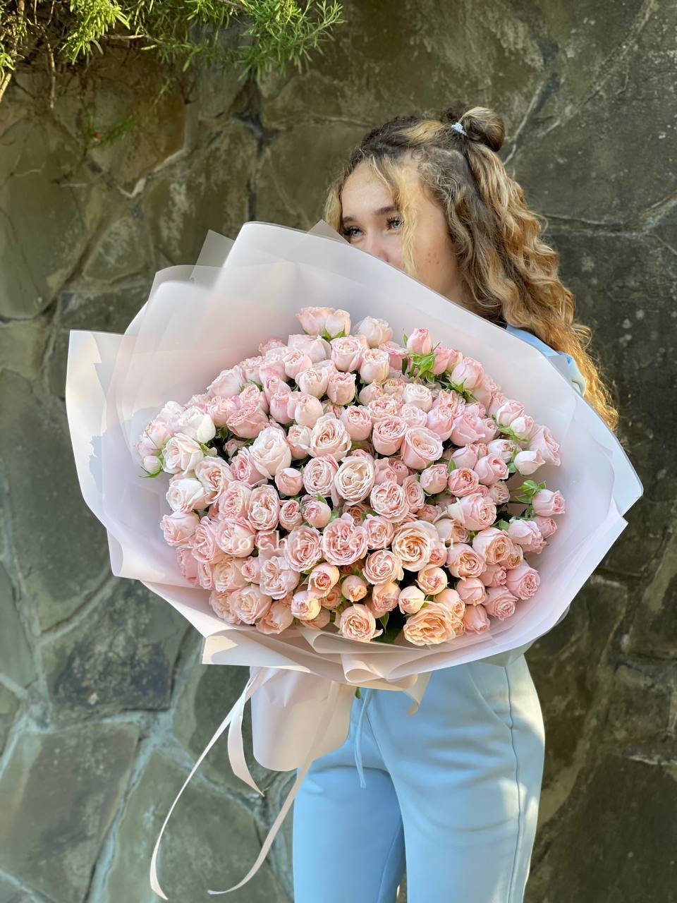 Для заказа товара "Кустовые розы Бомбастик в крафте" с доставкой в Пензе нажмите в корзину
