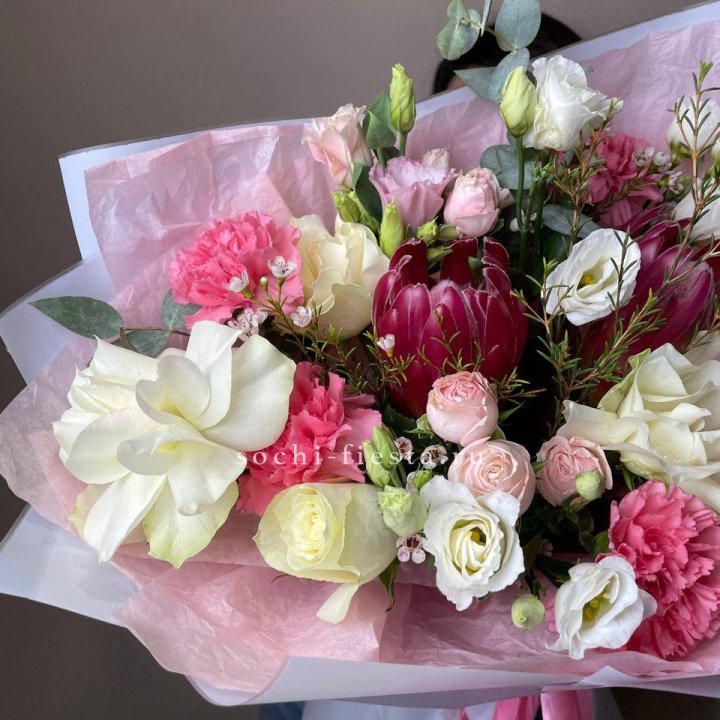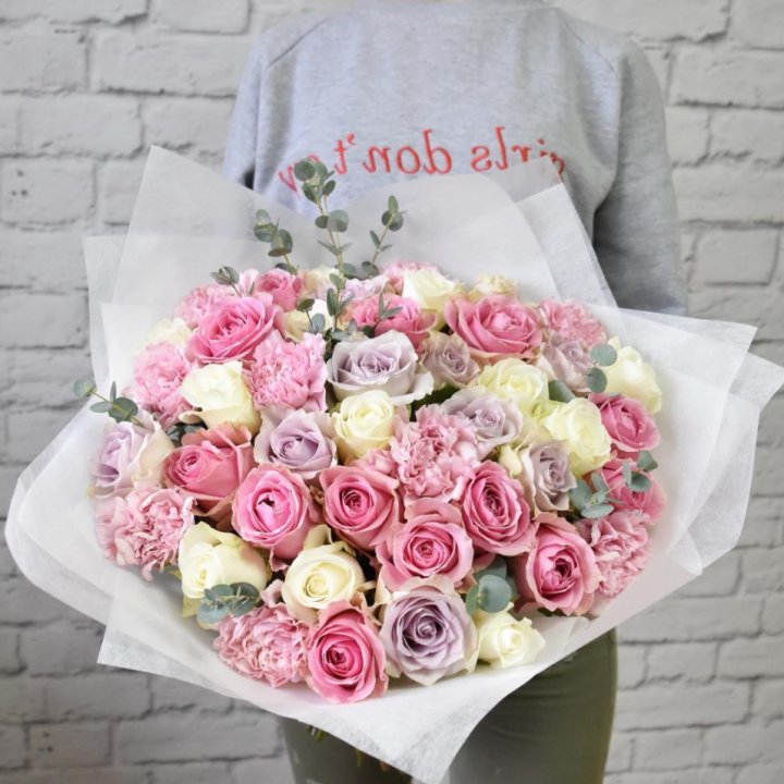 В Пензе сборный букет — один из главных флористических форматов. Небольшой город не нуждается в авангарде и экспериментах: здесь ценят понятное, красивое и живое. Сборный букет с розами, хризантемами и сезонными акцентами — то, что флорист в Пензе делает изо дня в день, и делает хорошо.