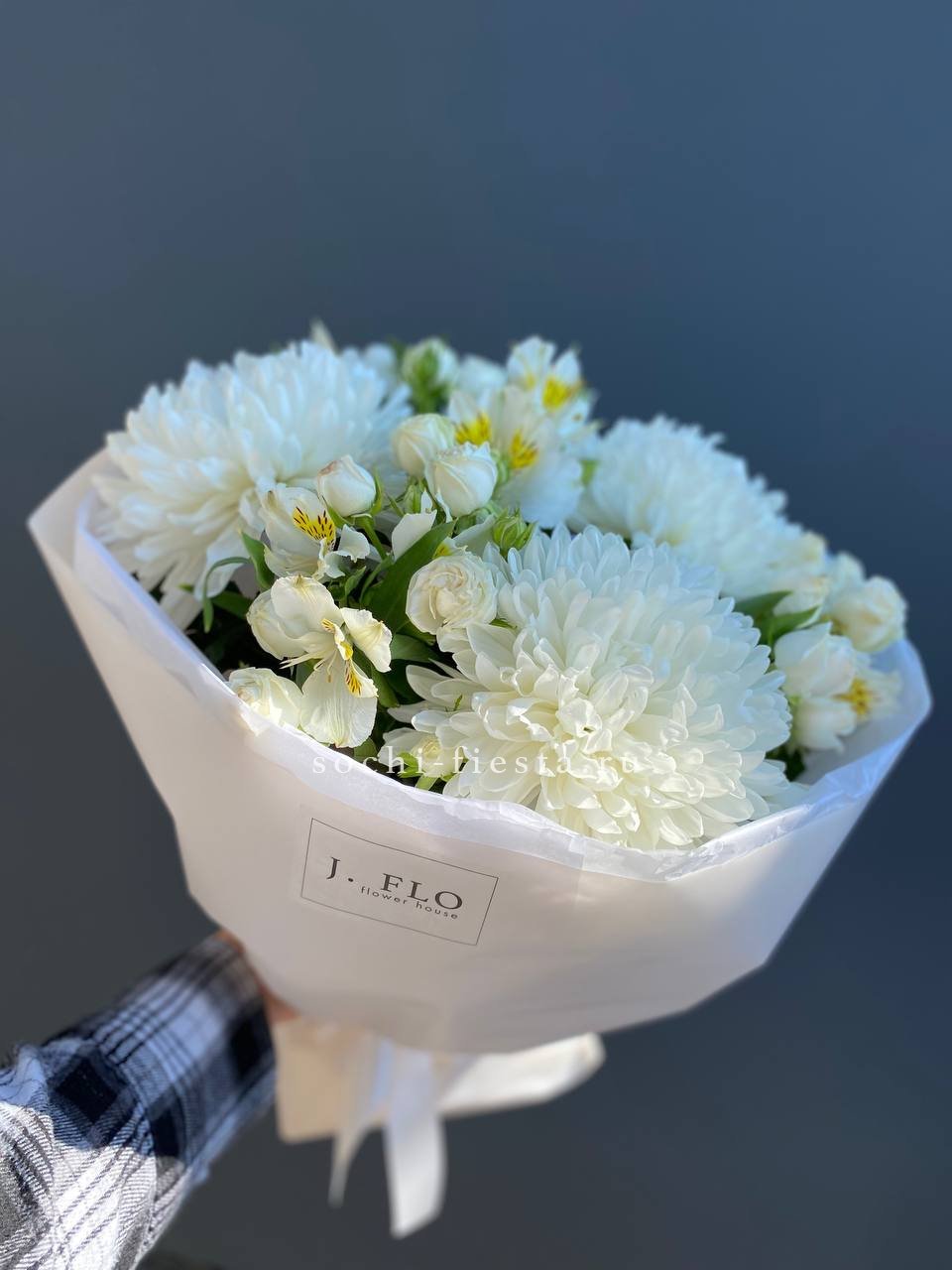 Хризантема Miranda раскрывается пышными соцветиями среди кустовых роз и альстромерий. Плотная структура и природная свежесть сохраняются долго. Композиция для тех, кто ценит надежность и натуральную красоту.