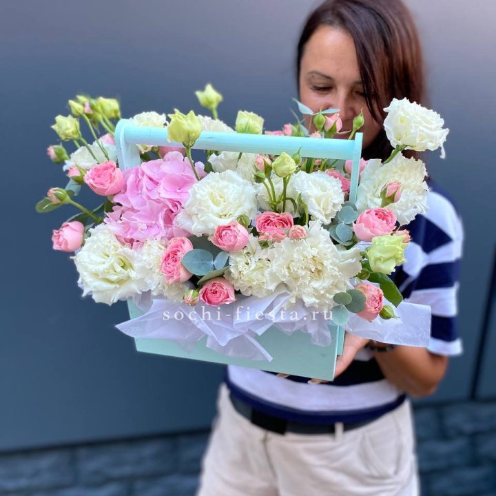 Летние семейные торжества, дни рождения, юбилеи — основной поток летних заказов. Флорист знает клиентов лично, часто предлагает сезонный акцент к знакомому формату: пионы к обычному розовому букету, гортензия к миксу с эвкалиптом.