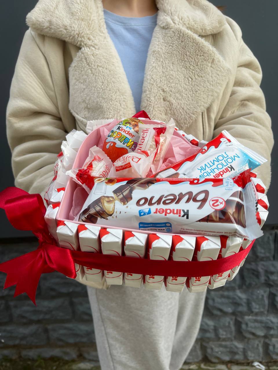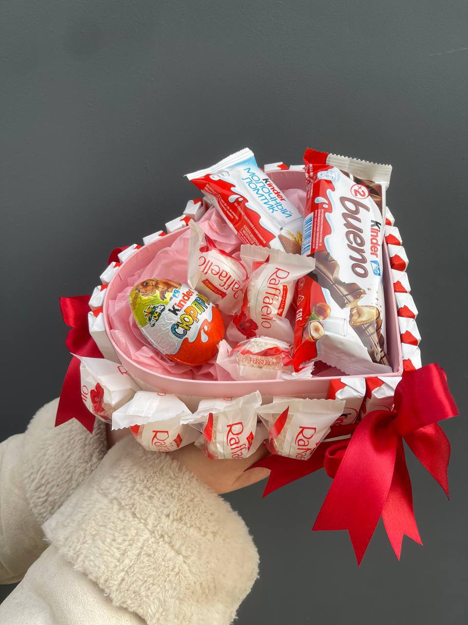 шоколад Merci- 25шт., конфеты Ferrero- 10шт., коробка сердце.