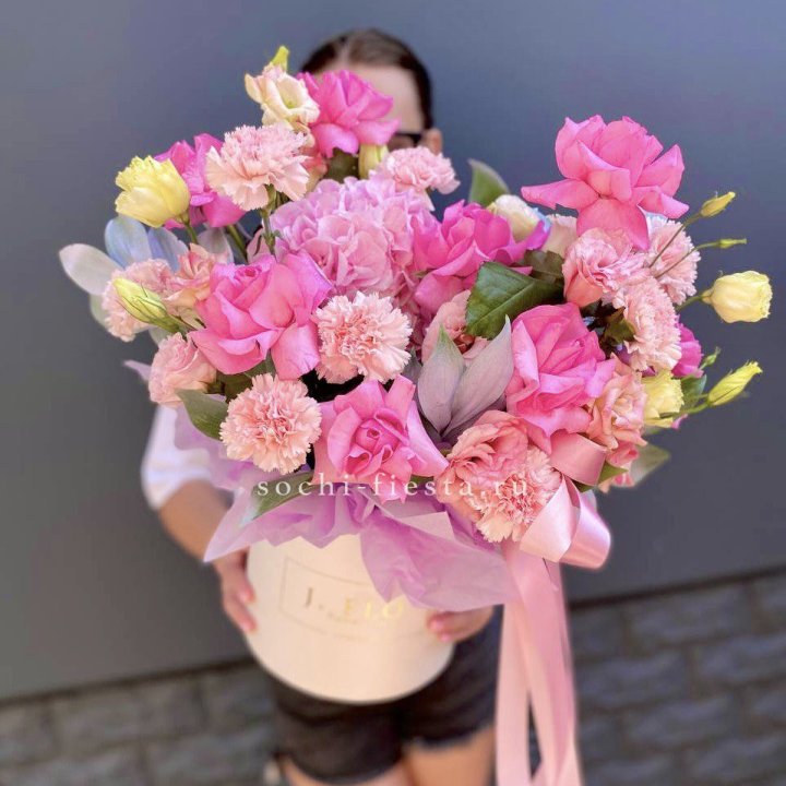 Выписка из роддома — пастельные тона в шляпной коробке. Школьные выпускные — отдельный большой сегмент весной: букеты для учителей, небольшие букеты для выпускников.