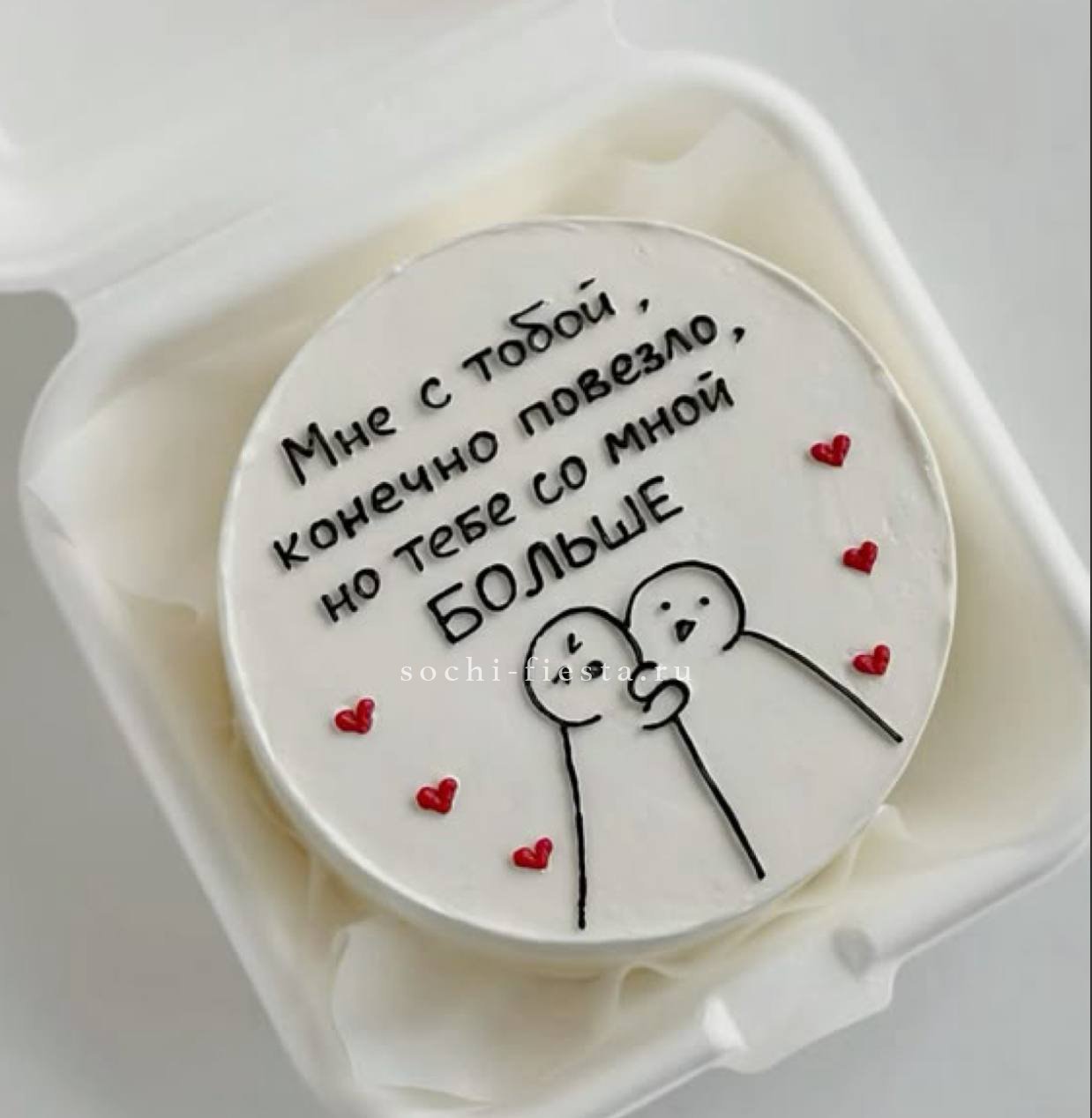 Компактный десерт с теплым посланием для близкого человека. Ручная работа видна в каждой детали крема и декора. Два вкуса начинки позволяют выбрать настроение этого дня.